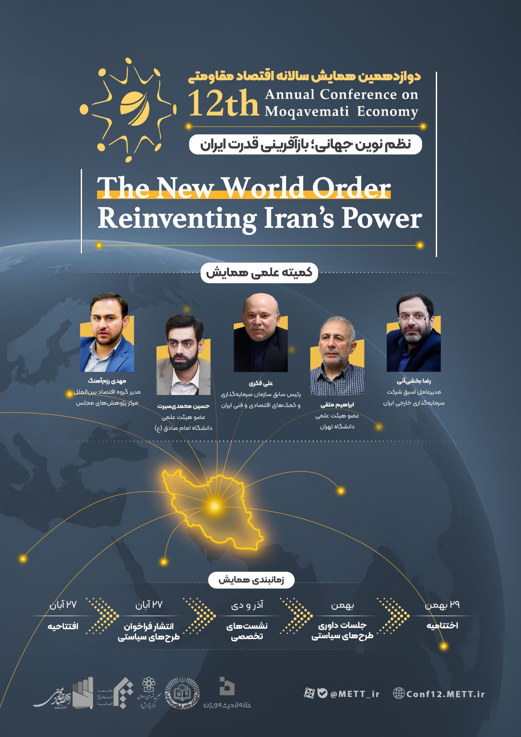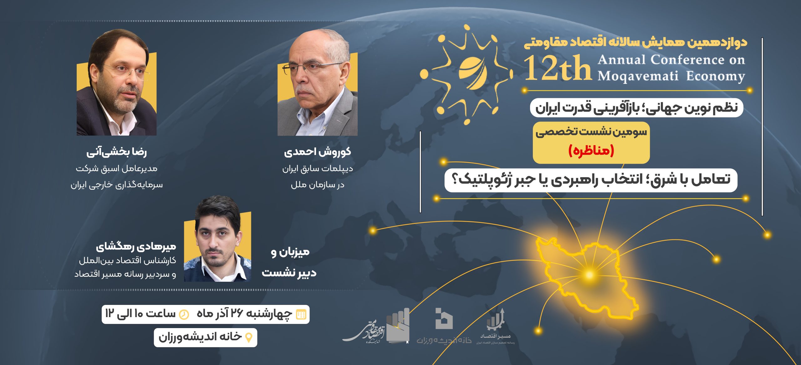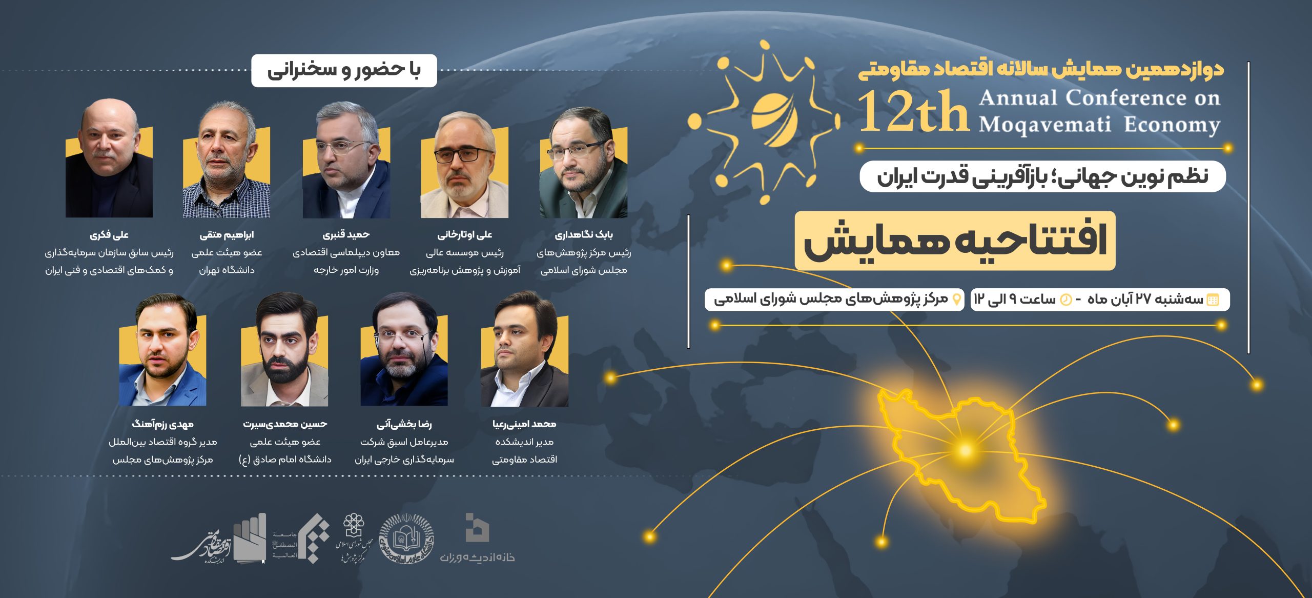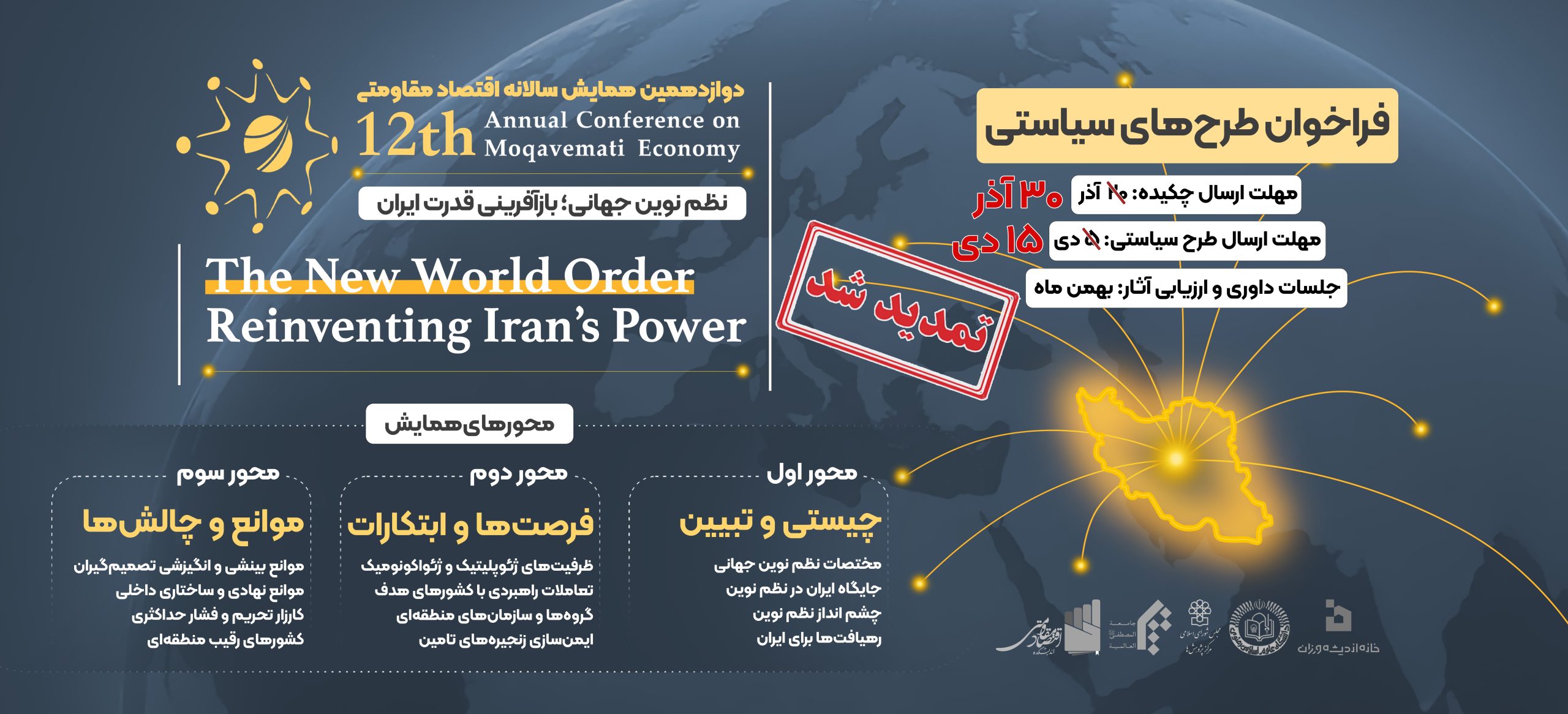 اختتامیه دوازدهمین همایش سالانه اقتصاد مقاومتی با موضوع «نظم نوین جهانی؛ بازآفرینی قدرت ایران» در تاریخ ۱۴۰۴/۱۱/۲۸ و همزمان با سالروز ابلاغ سیاستهای اقتصاد مقاومتی برگزار میشود.