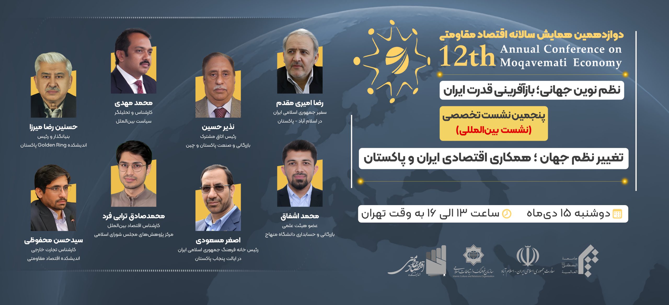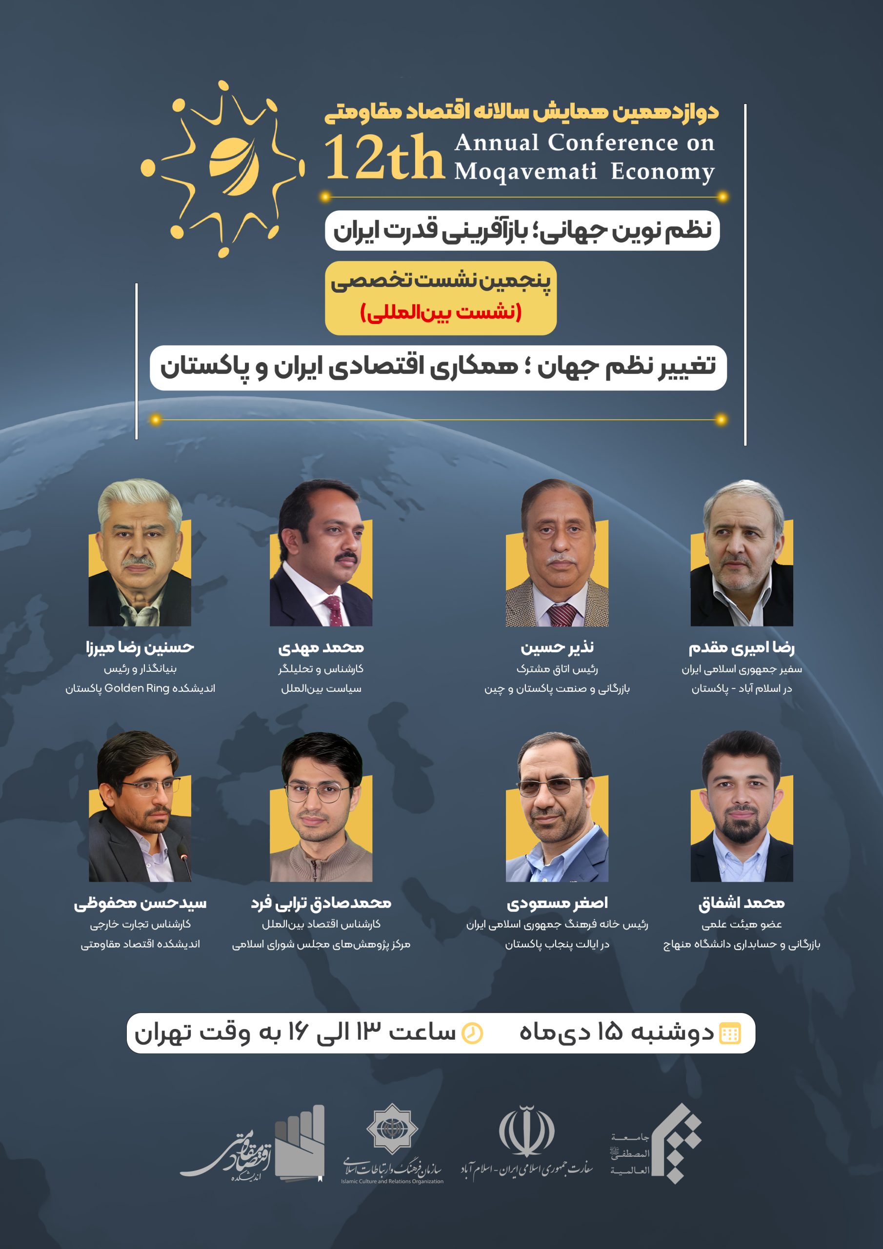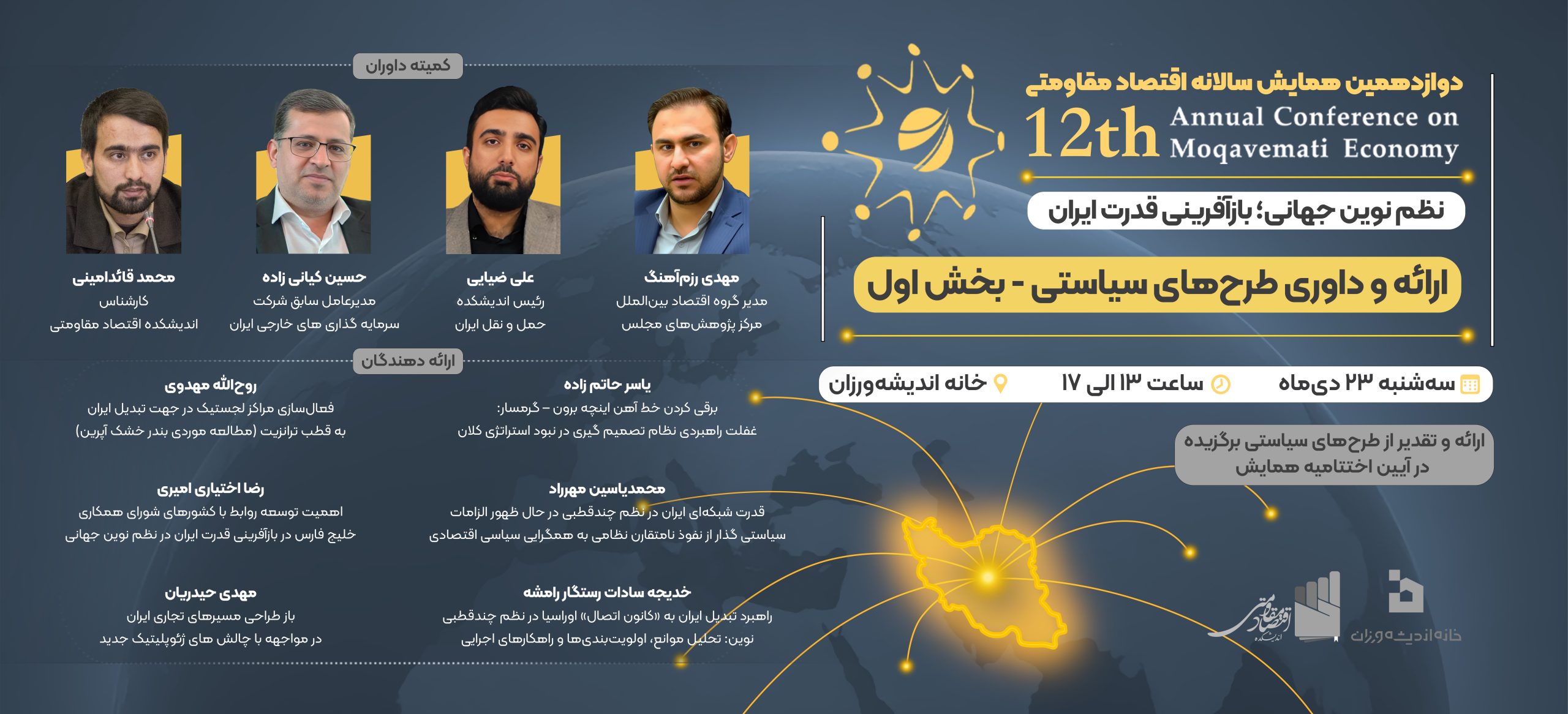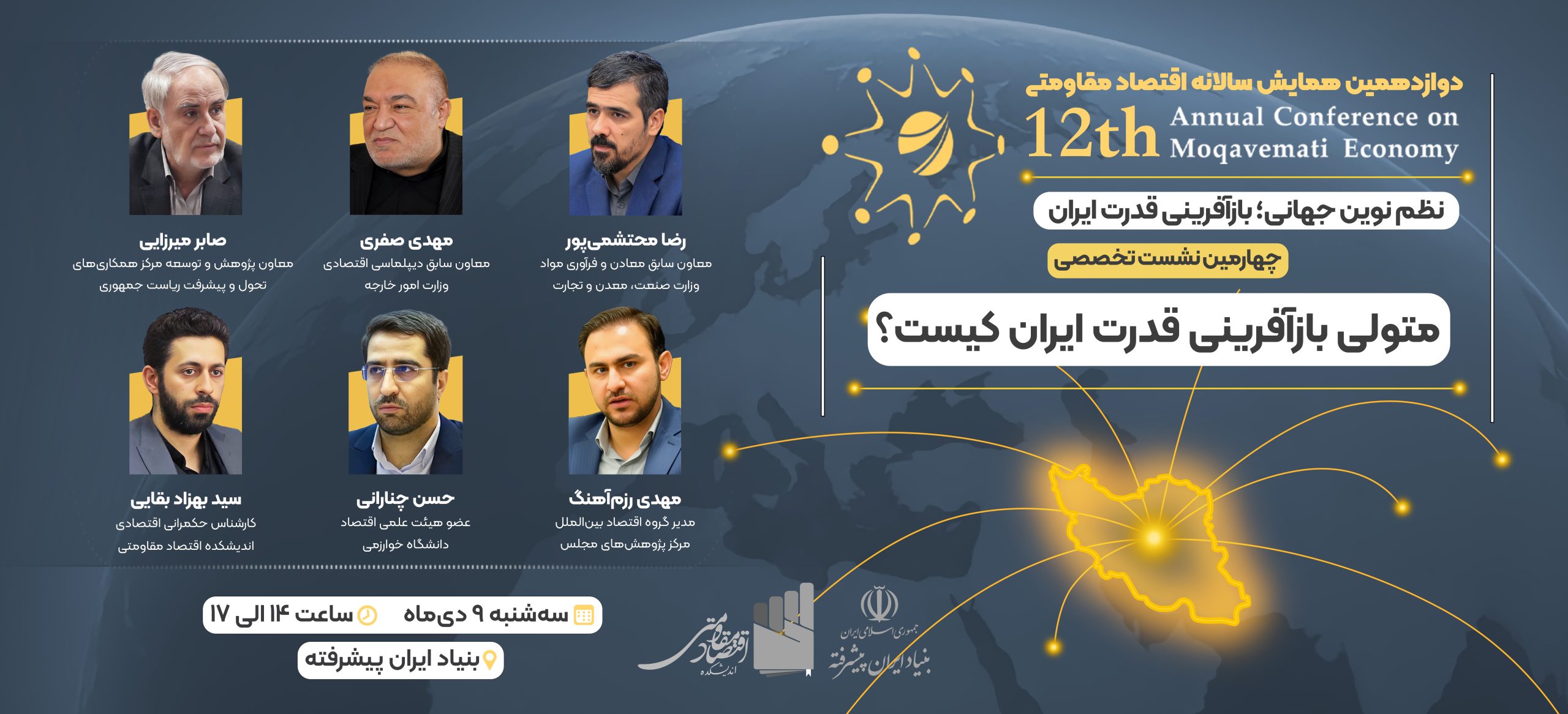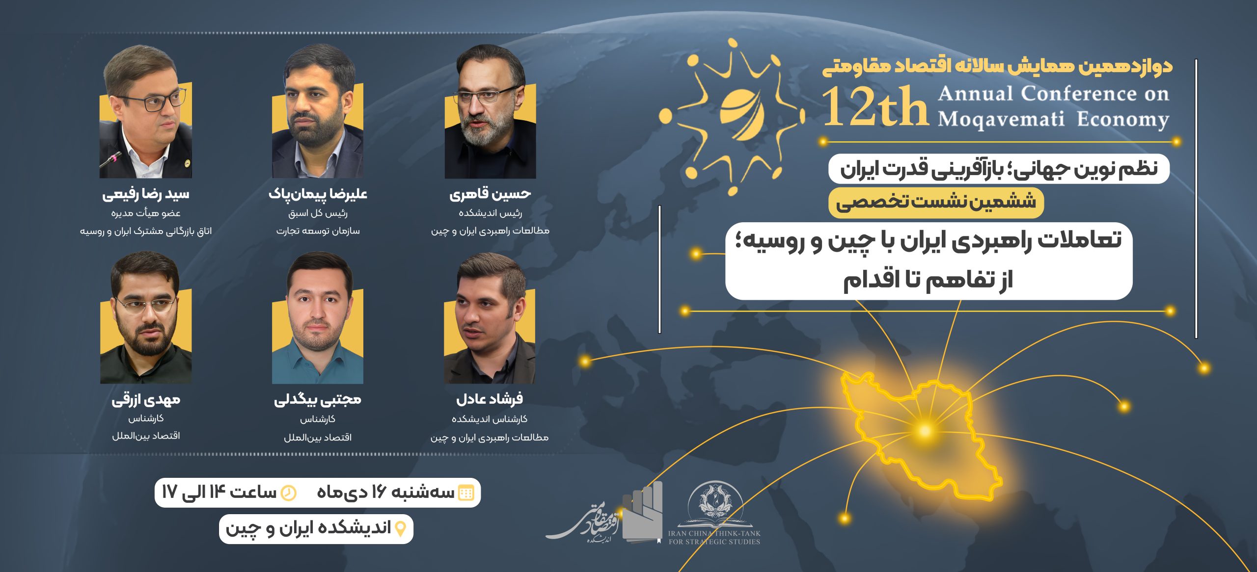 اختتامیه دوازدهمین همایش سالانه اقتصاد مقاومتی با موضوع «نظم نوین جهانی؛ بازآفرینی قدرت ایران» در تاریخ ۱۴۰۴/۱۱/۲۸ و همزمان با سالروز ابلاغ سیاستهای اقتصاد مقاومتی برگزار میشود.