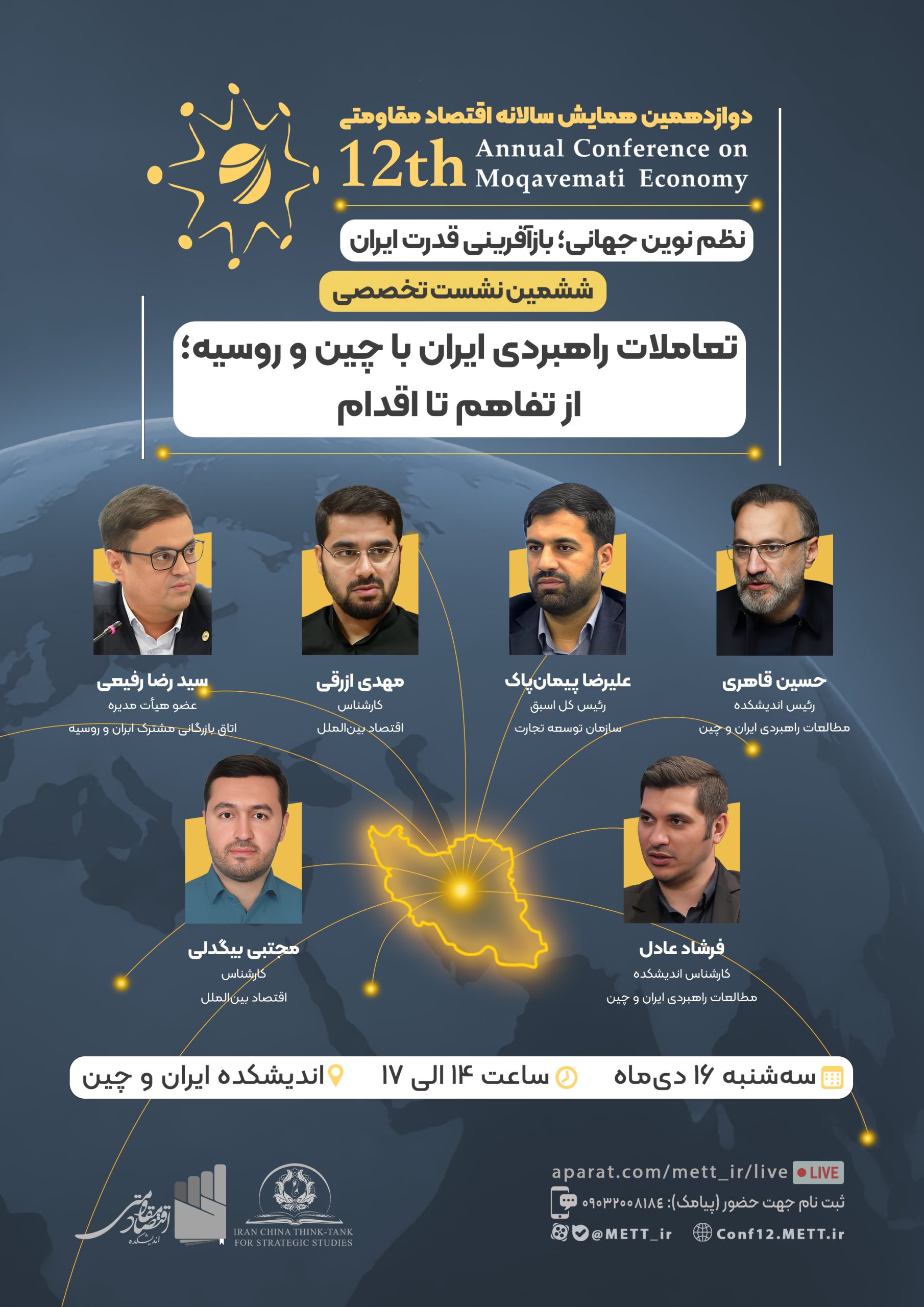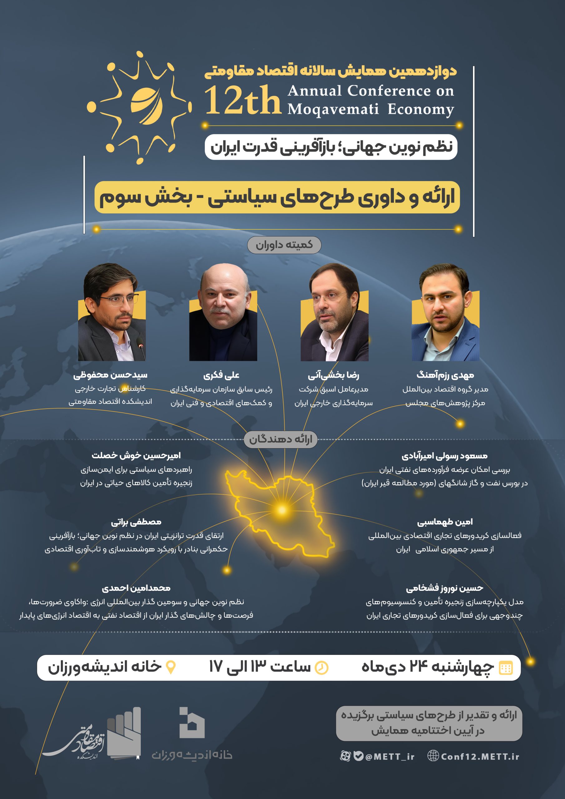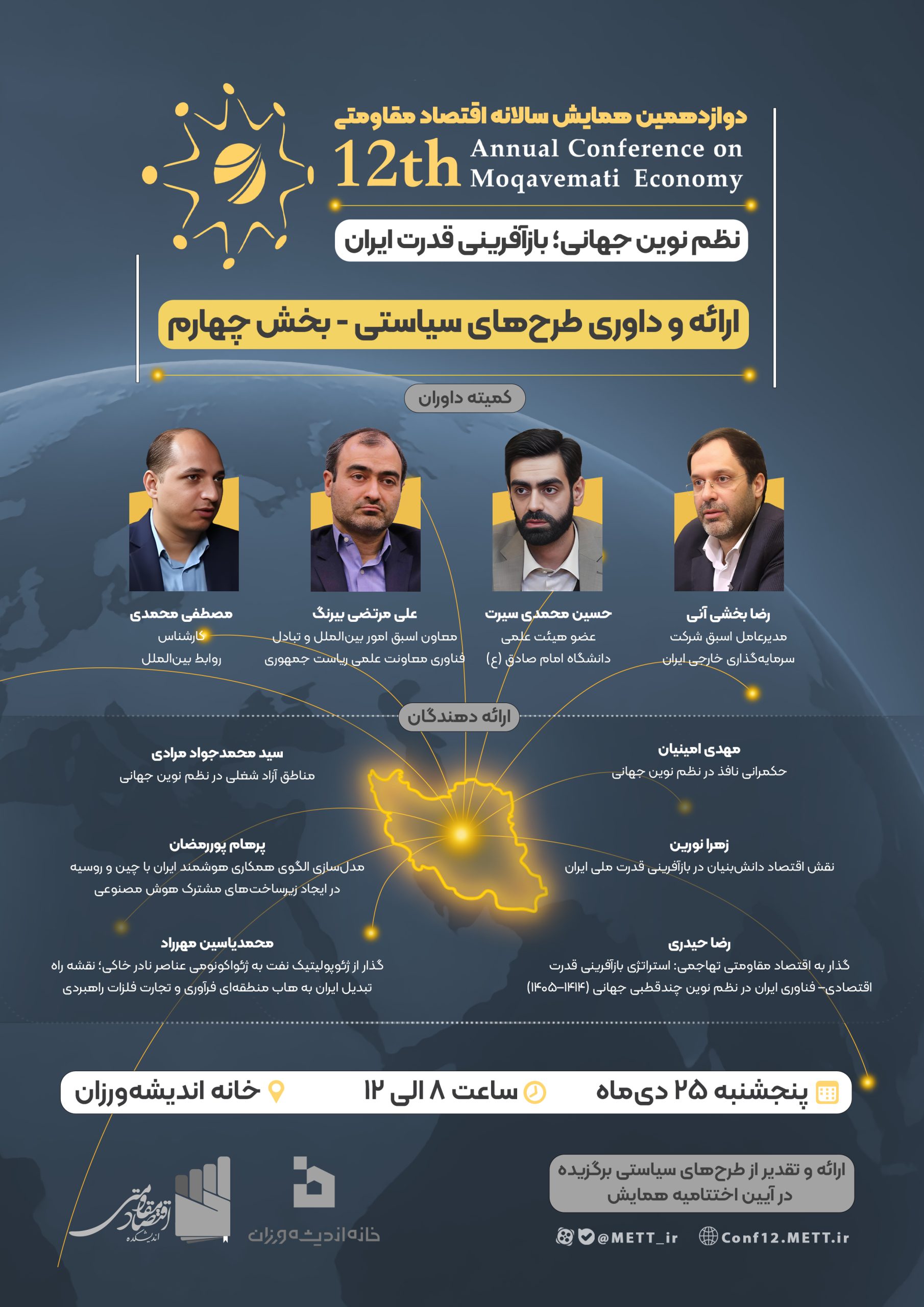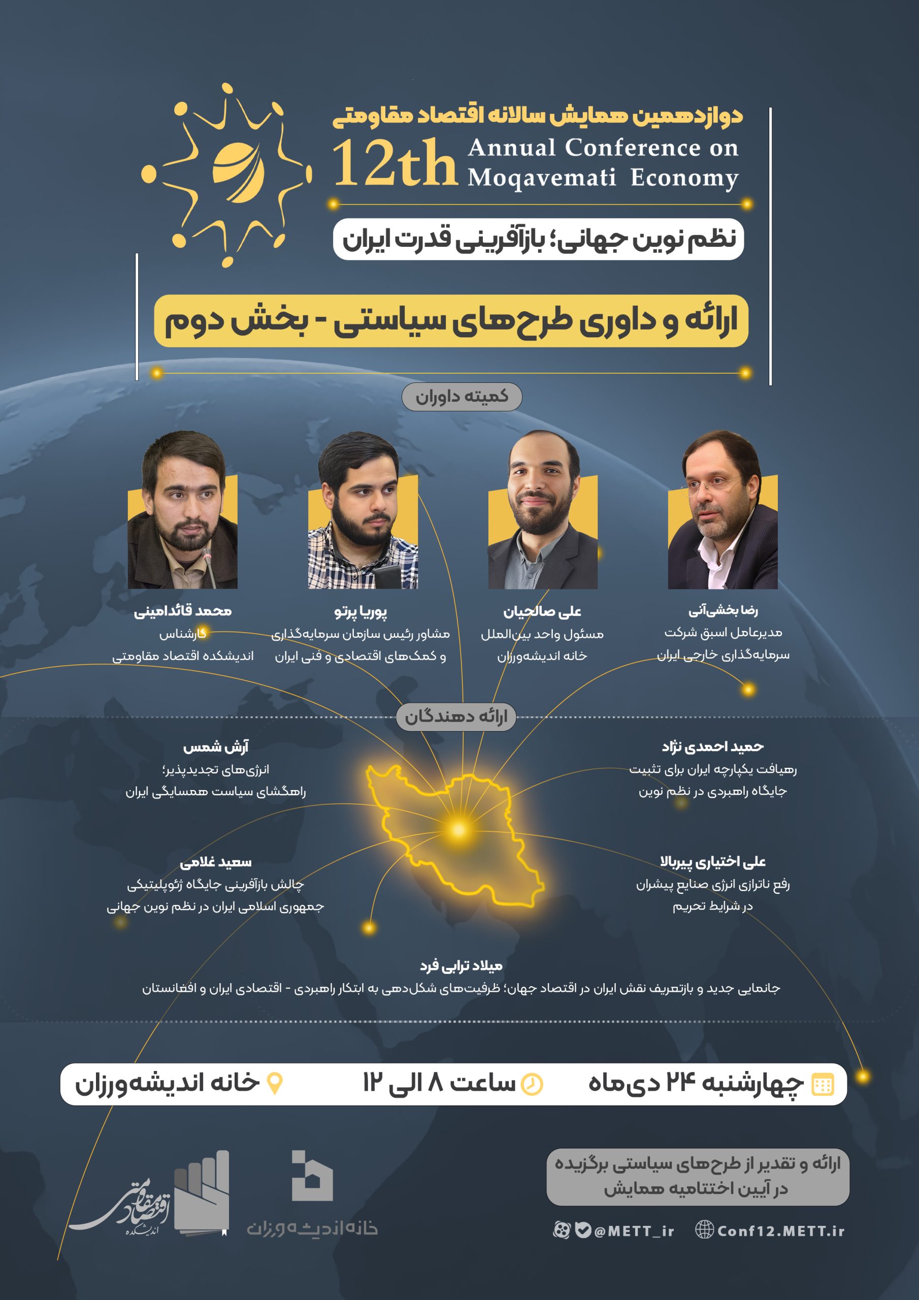 اختتامیه دوازدهمین همایش سالانه اقتصاد مقاومتی با موضوع «نظم نوین جهانی؛ بازآفرینی قدرت ایران» در تاریخ ۱۴۰۴/۱۱/۲۸ و همزمان با سالروز ابلاغ سیاستهای اقتصاد مقاومتی برگزار میشود.